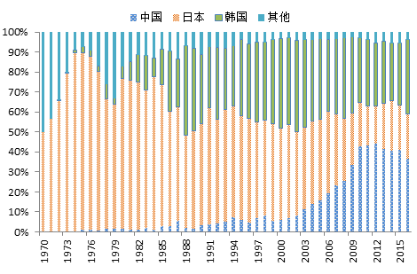 产业转移是世界船舶工业的发展规律。二十世纪以来,世界造船中心先后由欧美转移至日本,由日本转移至韩国,目前正由韩国向中国转移。20世纪50年代以前,世界造船中心在欧美;1973年第一次石油危机后,日本造船业快速发展,世界造船业形成日、欧两极竞争格局;1978年第二次石油危机后,韩国造船业异军突起,造船产量超过西欧稳居世界第二位,世界造船业形成韩、日两极竞争格局;本世纪以来,中国造船业快速崛起,逐渐形成中、韩、日三极竞争格局并延续至今,尤其是中韩两国竞争呈现白热化状态。